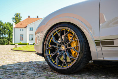 Vorne in 10.5 x 23 Zoll mit 285/35 ZR23, hinten in 12.0 x 23 Zoll mit kraftvollem 315/30 ZR23 – ein Setup, das Performance und Design auf den Punkt bringt.